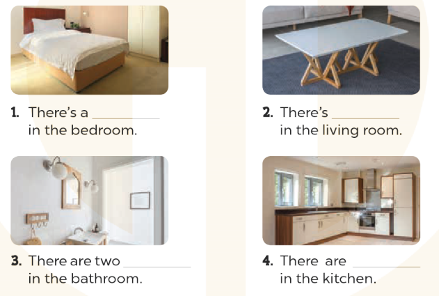 1. There’s a bed in the bedroom. (Có 1 cái giường ở trong phòng ngủ.)
