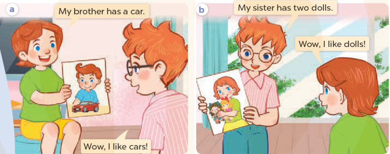 b.My sister has two dolls.  (Em gái mình có 2 con búp bê.)