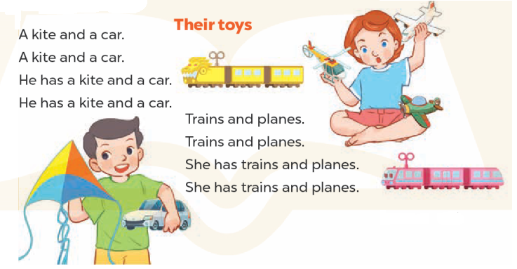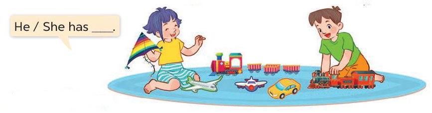 – He has two trains. (Anh ấy có 2 chiếc tàu hỏa.)