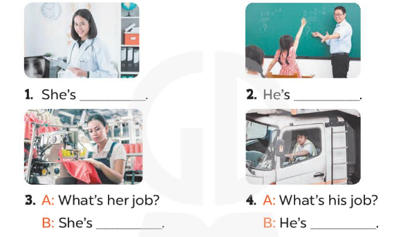 3. A: What’s her job? (Công việc của cô ấy là gì?)