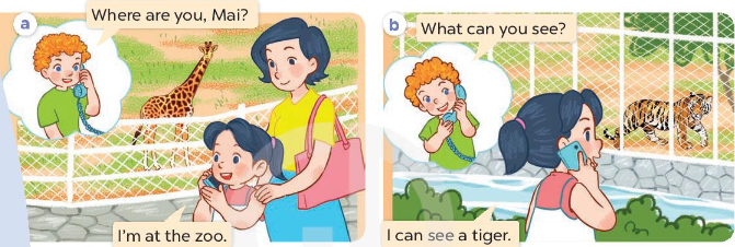 b. A: What can you see? (Bạn có thể nhìn thấy con vật gì?)