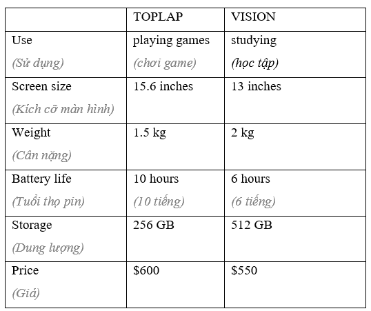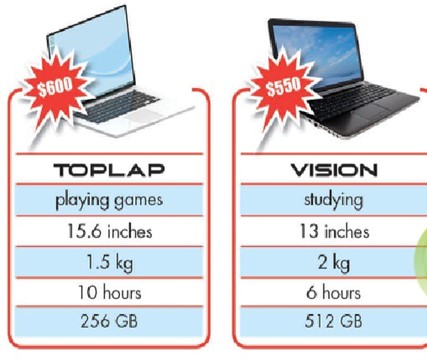 Sales assistant: OK. Then I think you should buy the VISION laptop. It’s good for studying.