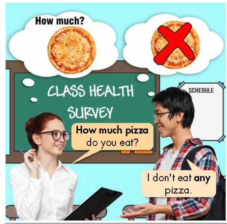 Boy: I don’t eat any pizza.(Tôi không ăn pizza.)