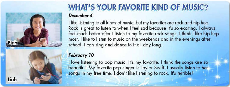 a. Read the blog posts. Do Binh and Linh both like rock music?