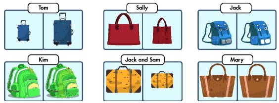 Ben: This suitcase has Lisa and Jake’s names on it, so it must be (6) theirs.