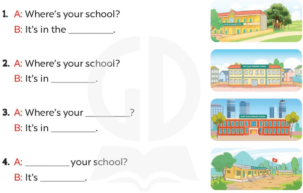3. Where’s your school? Is it in the city? (Trường của bạn ở đâu? Có phải ở trong thành phố không?)