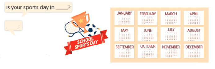 – Is your sports day in + tháng? (Có phải ngày thể thao vào tháng … không?)