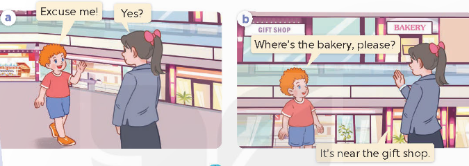 b. Where’s the bakery, please? (Xin hỏi tiệm bánh ở đâu?)