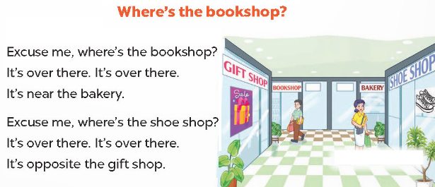 1.A: Where’s the bookshop? (Nhà sách ở đâu?)