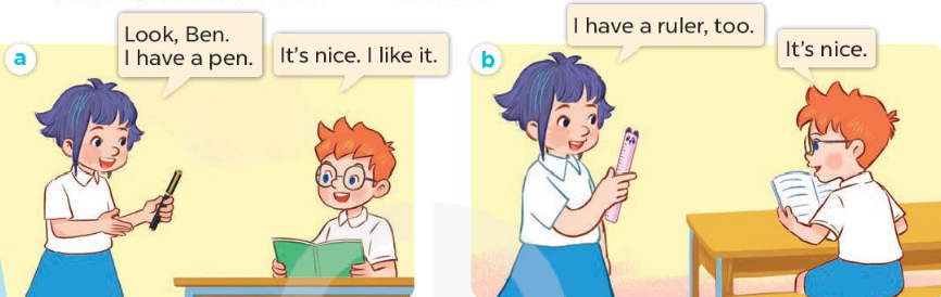 a. Look, Ben. I have a pen. (Nhìn này, Ben. Mình có 1 cây bút mực.)