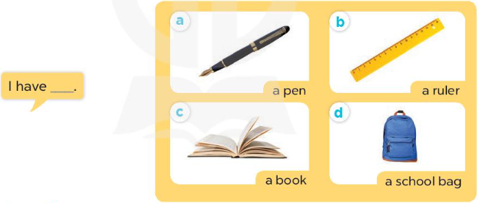 2. Ben: I have a school bag. (Mình có một chiếc cặp sách.)