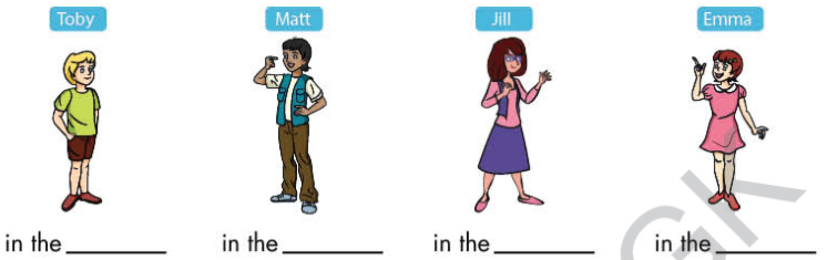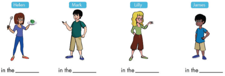 b. Now, Student B, you’re looking for your friends. Talk to Student A and answer their questions to find them. Write where they are under their picture.