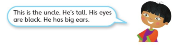(Đây là chú. Chú ấy cao. Đôi mắt của chú màu đen. Chú có đôi tai to.)