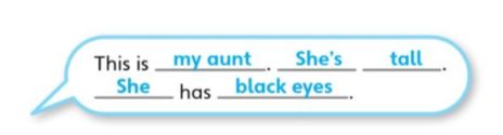 (Đây là cô của tôi. Cô ấy cao. Cô có đôi mắt đen.)