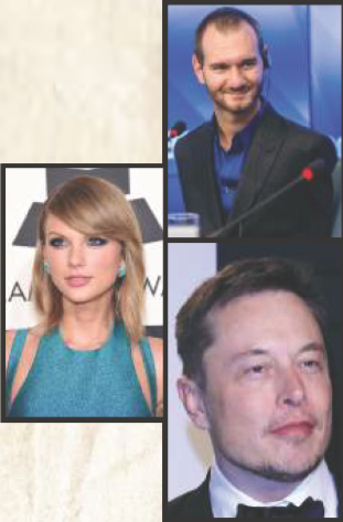 They are Taylor Swift, Nick Vujicic, and Elon Musk. They are inspiring.
