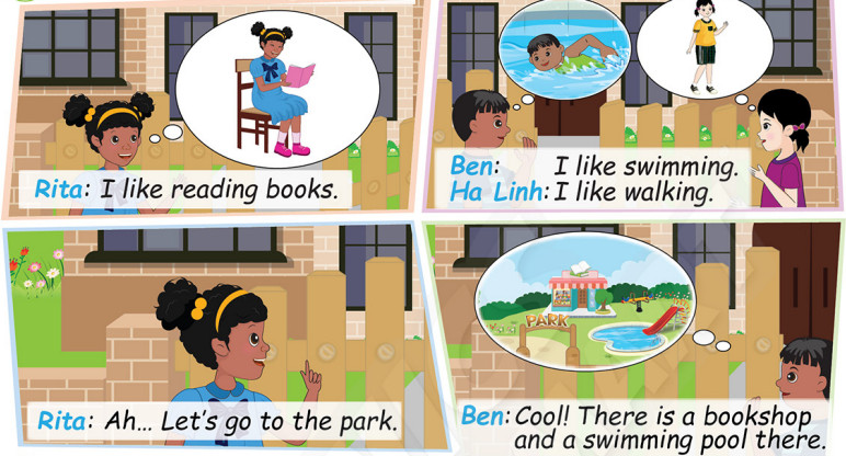 Rita: Ah … Let’s go to the park. (Ah… Chúng ta hãy đi đến công viên nào!)