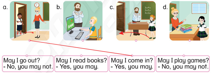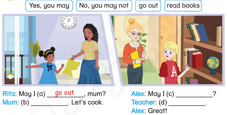 Alex: May I (c) read books? (Em có thể đọc sách được không ạ?)