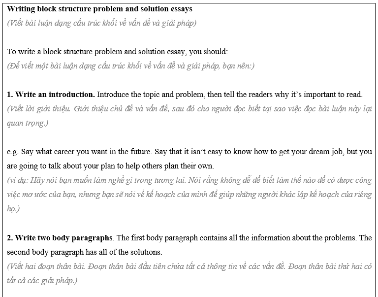 (Nối các vấn đề với các giải pháp. Sử dụng mô hình bài luận dạng cấu trúc khối về vấn đề và giải pháp để giúp bạn.)