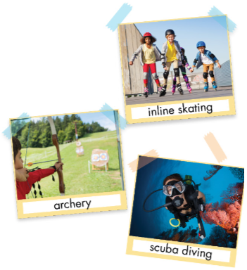 Listening a. Listen to a talk about an extreme sport. How does the speaker feel about it?. b. Now, listen and circle. Reading a. Read Suzanne’s email quickly. What is the email about?. b. Now, read and answer the questions. Writing skill: Read about writing invitation emails, then reorder parts of the email (1-6). Planing: Choose one of the activities in the pictures or your own idea, then make notes using the questions. Writing Now, write an invitation email to a friend. Write 60 to 80 words.