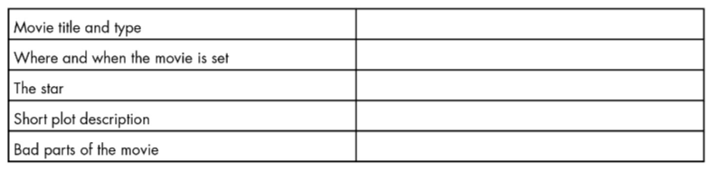 Now, use your notes to write a movie description. Write 60 to 80 words.