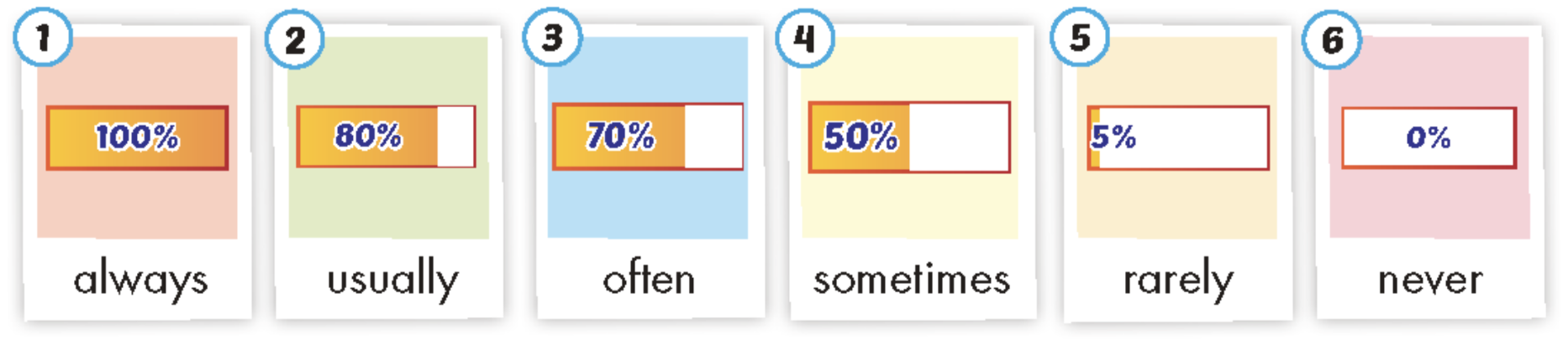 Listen and point. Repeat. Play the game “Board race”. Listen and practice. Look, write, and match. Practice. Describe the comic. Use new words. Listen. Listen and circle.