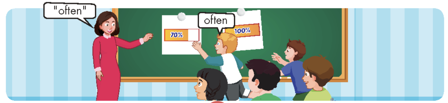 sometimes (adv): thường (mức độ thường xuyên cao hơn “often”)