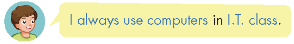 (Tôi luôn sử dụng máy tính ở trong lớp tin học.)