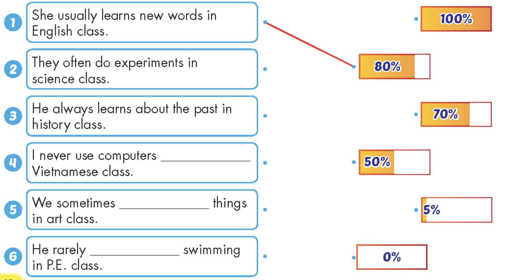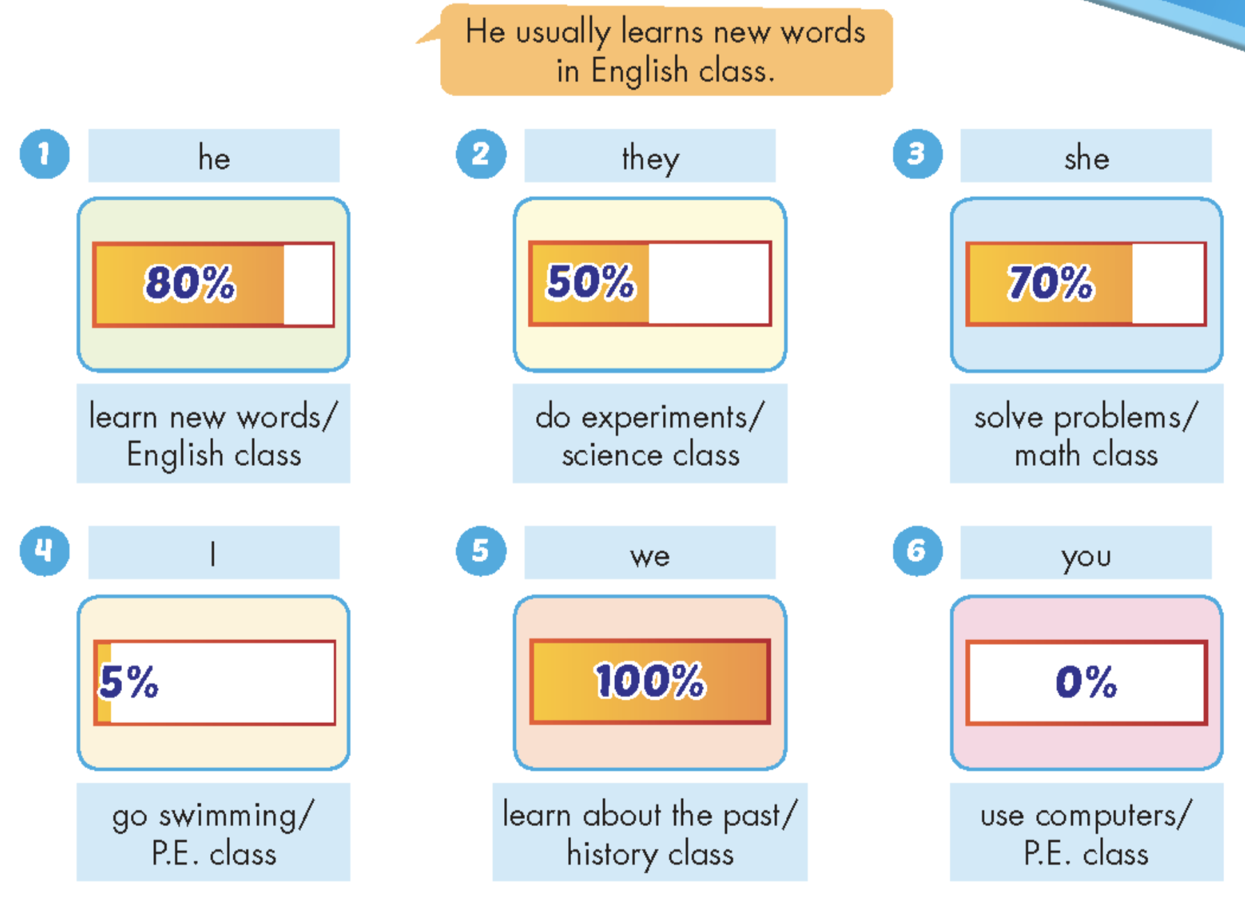 1. He always learns new words in English class.