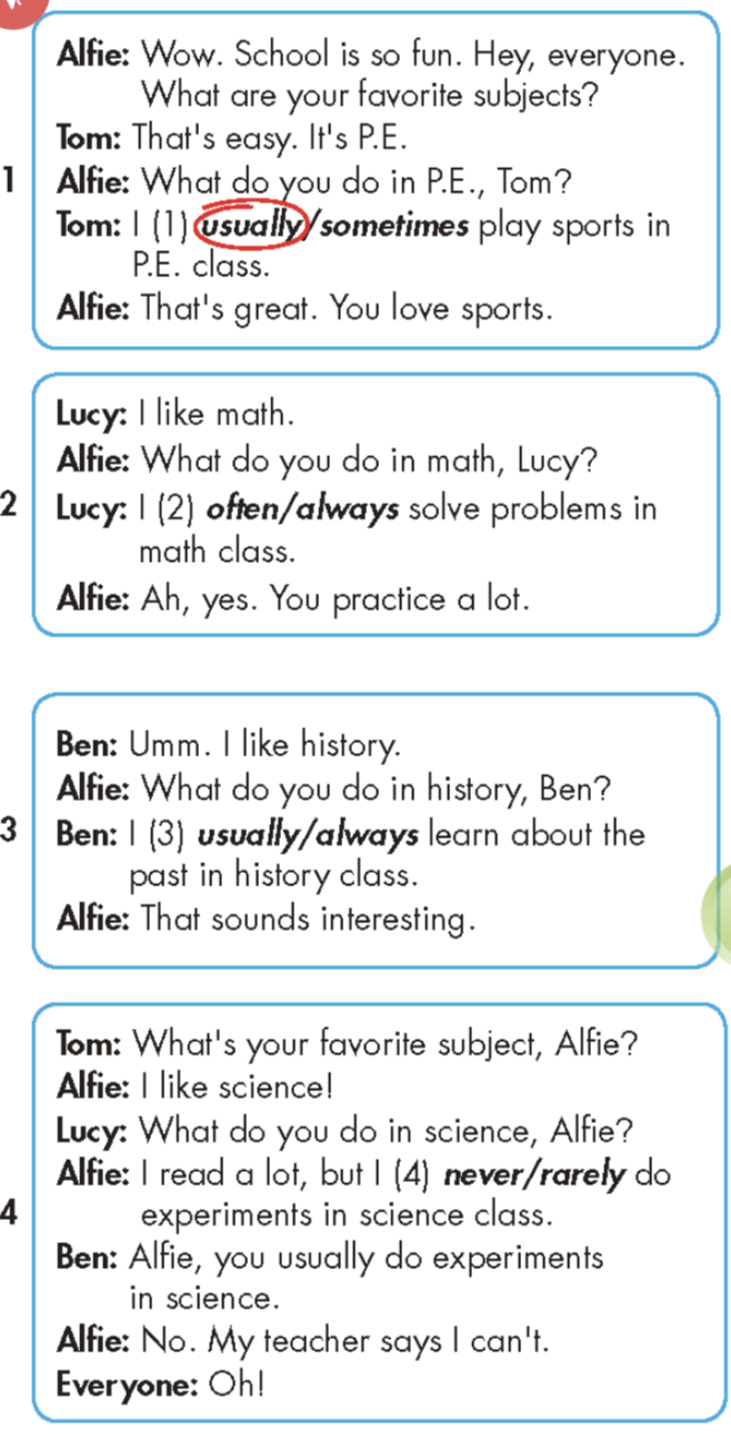 Alfie: I read a lot, but I rarely do experiments in science class.