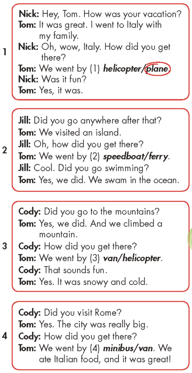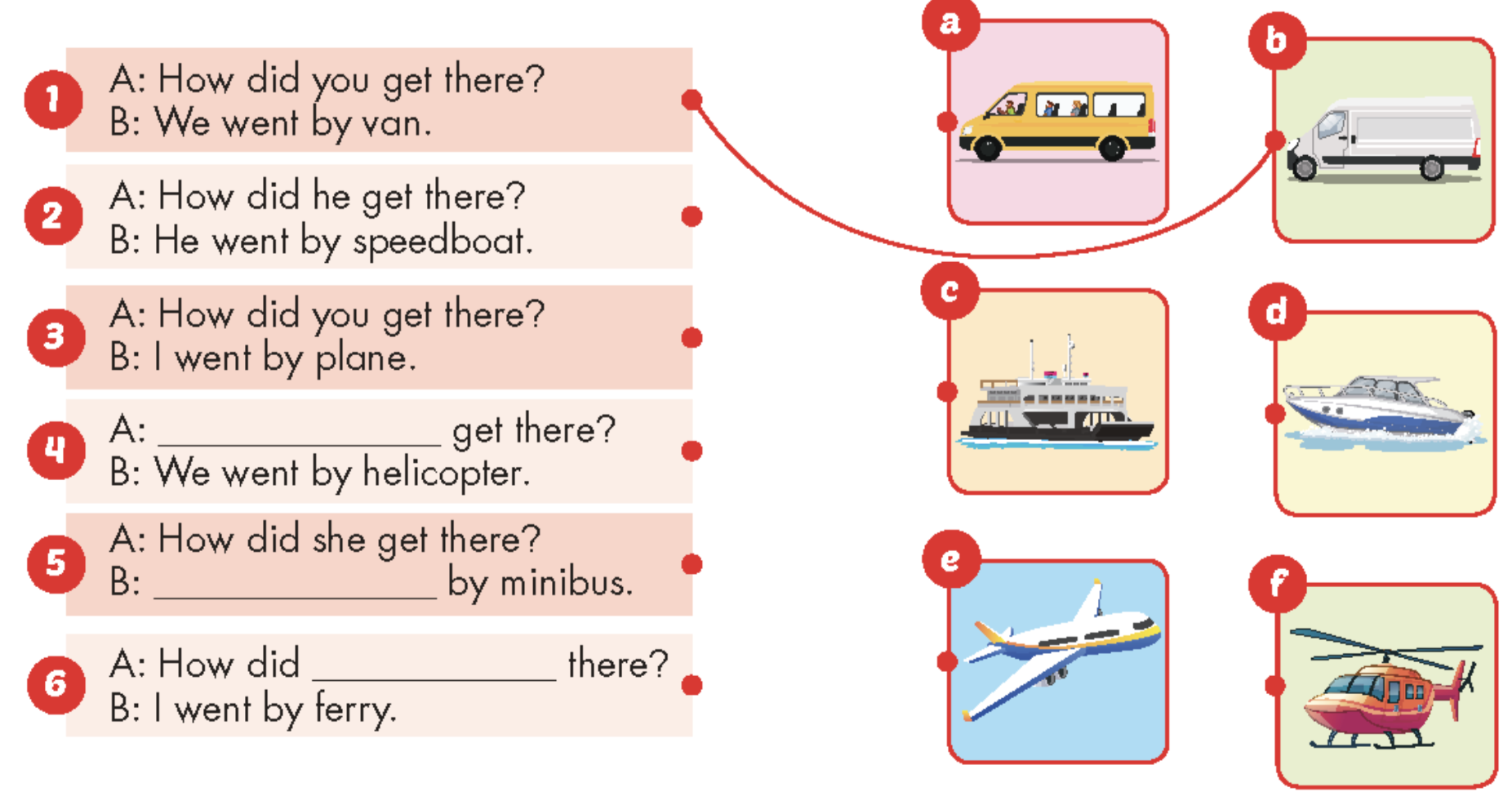 (Kể tên các loại phương tiện giao thông khác mà bạn biết. Luyện tập lại.)