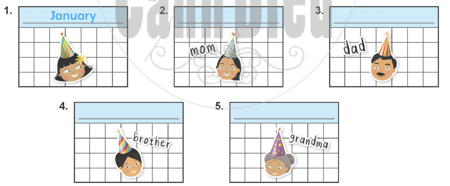 Look and listen. Repeat. Listen and point. Say. Look. Listen and write. Look and listen. Repeat.