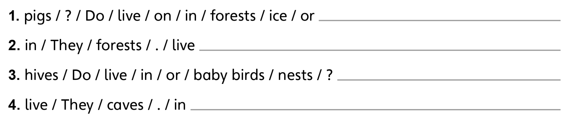 2. Reorder the words. Write the sentences.