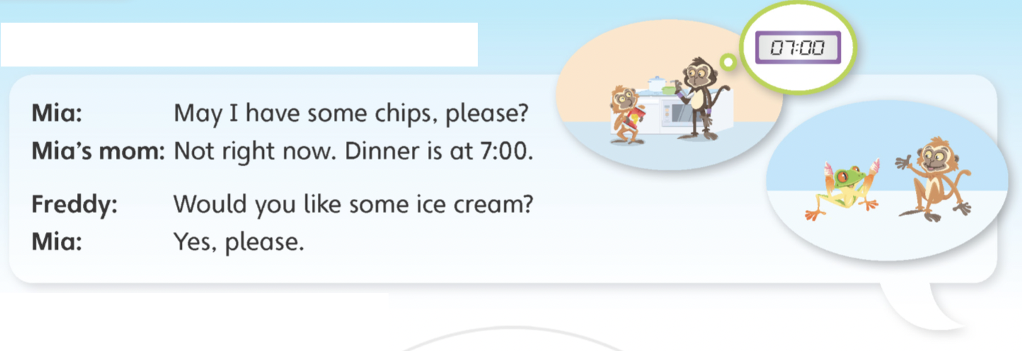 Mia’s mom: Not right now. Dinner is at 7:00.