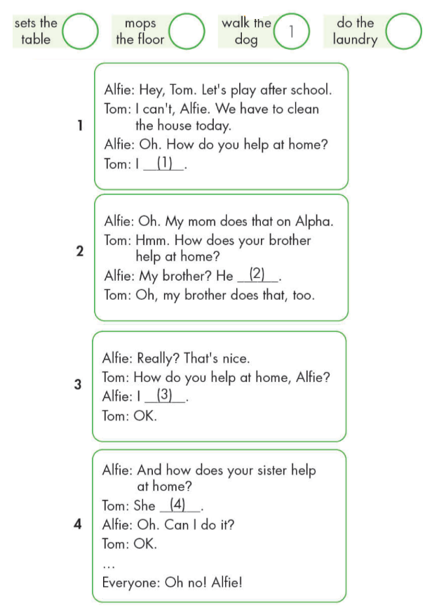 4. Alfie: And how does your sister help at home?
