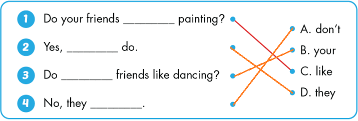 – Do your friends like dancing? (Bạn của bạn có thích nhảy múa không?)