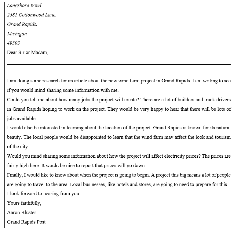 Tôi tên là Joseph Moore, và tôi là phóng viên của Báo TP.HCM. Tôi đang tìm hiểu về đập thủy điện đang được xây dựng ở Grenfield. Tôi viết thư này để hỏi ông/ bà một số câu hỏi về nó.