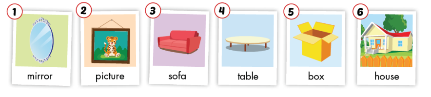 A. 1. Listen and point. Repeat. 2. Play Board race. B. 1. Listen and practice. 2. Look and write. Practice. C. 1. Listen and repeat. 2. Chant D. 1. Look and listen. 2. Listen and number. 3. Practice with your friends. E. Ask and answer. F. Look at part E. Play the memory game.