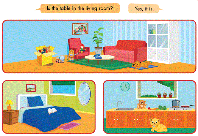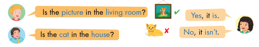 Is the cat in the living room? (Con mèo ở trong phòng khách phải không?)