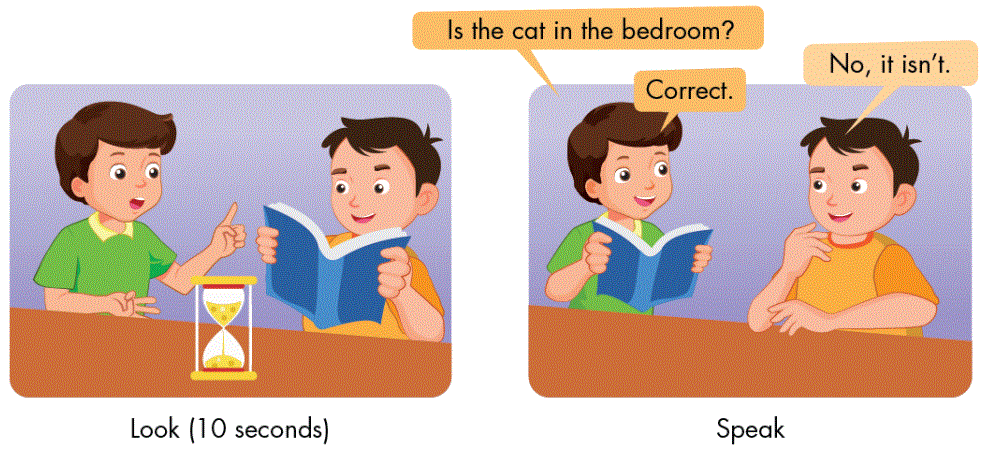 Cách chơi: Môt bạn sẽ nhìn và ghi nhớ những vật có trong phòng trong vòng 10 giây. Sau đó, một bạn khác sẽ hỏi và bạn kia không nhìn sách và cố gắng nhớ lại để trả lời.