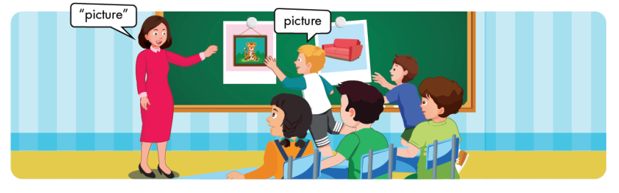 Cách chơi: Giáo viên sẽ dán hai bức tranh lên bảng, hai bạn sẽ xung phong chơi. Bắt đầu trò chơi, cô sẽ đọc một từ vựng tương ứng với một bức tranh treo trên bảng, từ cùng một vị trí xuất phát, một trong hai bạn chơi phải di chuyển thật nhanh và chạm vào bức tranh trên bảng. Ai nhanh hơn người đó thắng.