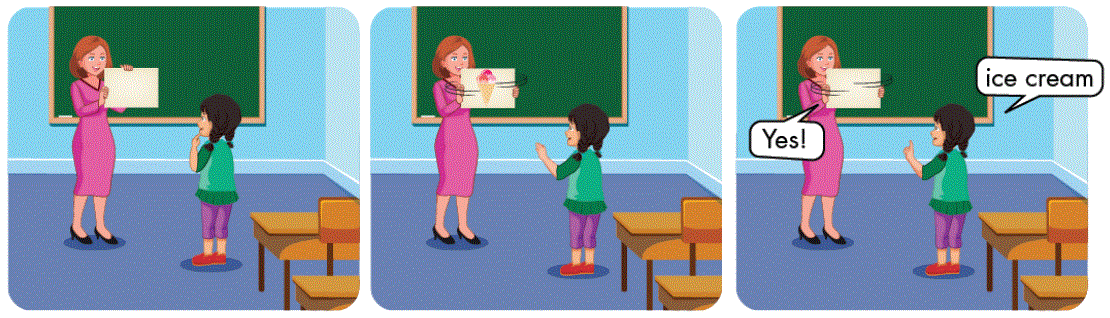 Ví dụ: Cô sẽ che rồi mở thật nhanh flashcard có hình cây kem, học sinh sẽ nhìn lén và đoán ngay là “ice cream”