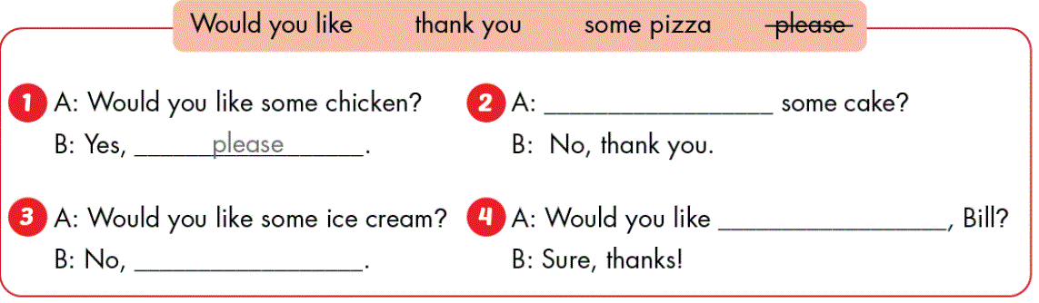 4. A: Would you like some pizza, Bill? (Bạn có muốn một ít pizza không?)