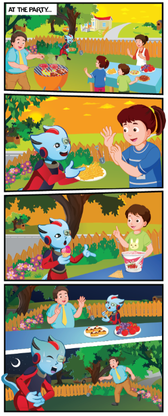Alfie: Wow! These fries are so good! Would you like some fries Lucy?
