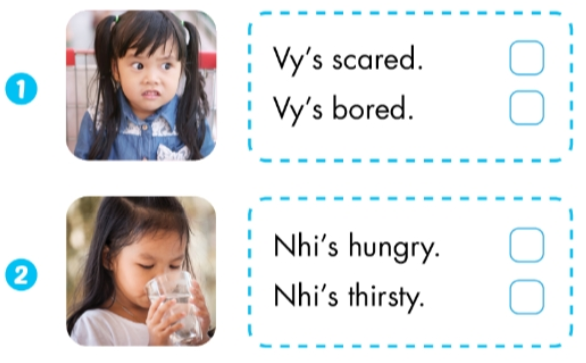 (Nhìn, đọc và đánh dấu √ vào ô.)