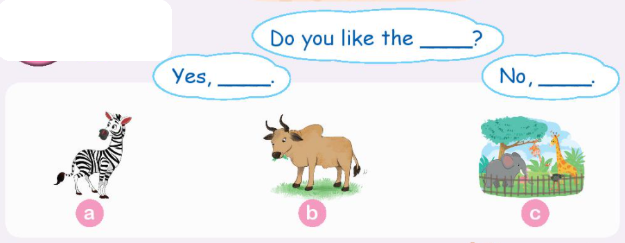 A: Do you like a zebu? (Bạn có thích con bò không?)