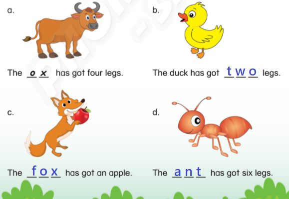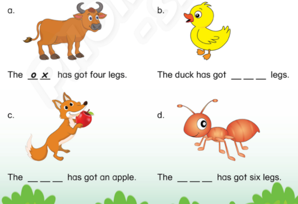 a. The ox has got four legs. (Con bò đực có 4 chân.)