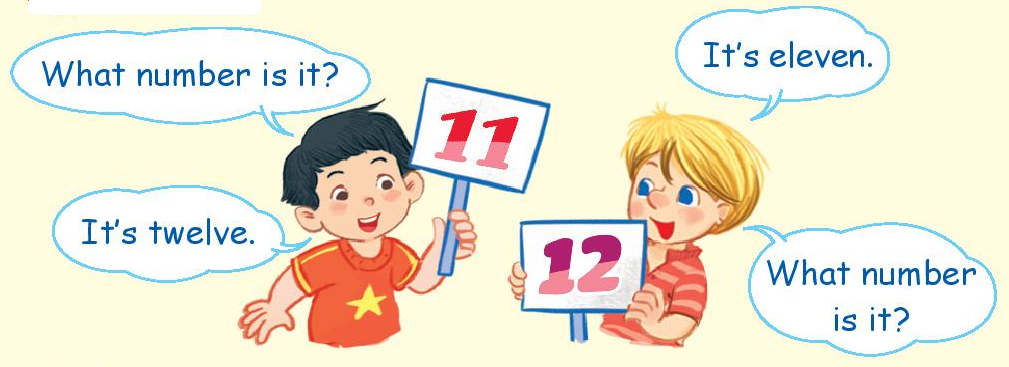 B: It’s eleven. What number is it? (Đây là mười một. Đây là số mấy?)