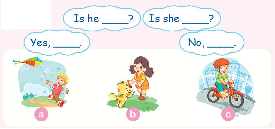 (Anh ấy đang đi xe đạp phải không? – Đúng rồi.)