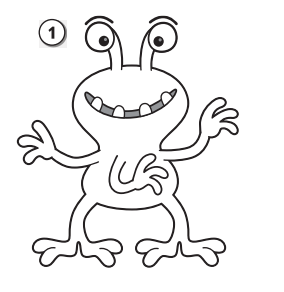 (Tôi có 3 cánh tay. Tôi có 9 ngón tay. Tôi có 4 bàn chân và 8 ngón chân. Tôi màu xanh.)