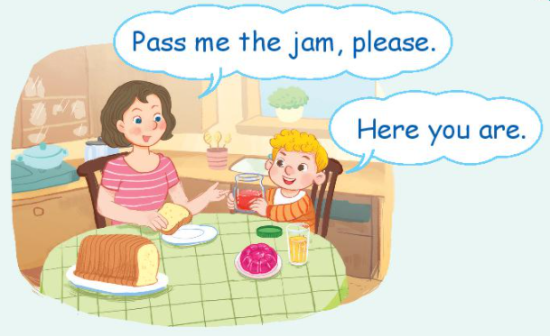 (Làm ơn đưa cho mẹ lọ mứt.)